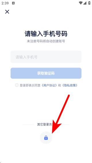2、在個人頁面的登錄界面,點擊密碼樣式的圖標,進入手機號密碼登錄頁面。