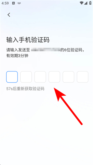 3、在輸入手機(jī)驗(yàn)證碼頁面,輸入驗(yàn)證碼后,后續(xù)按照提示設(shè)置新密碼即可。