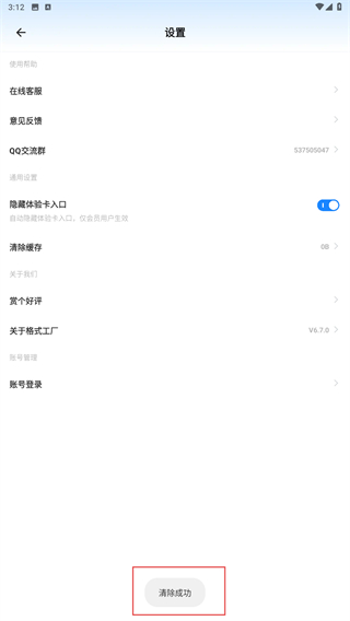 3、點(diǎn)擊后,當(dāng)下發(fā)顯示清除成功的字眼表示已清除成功。