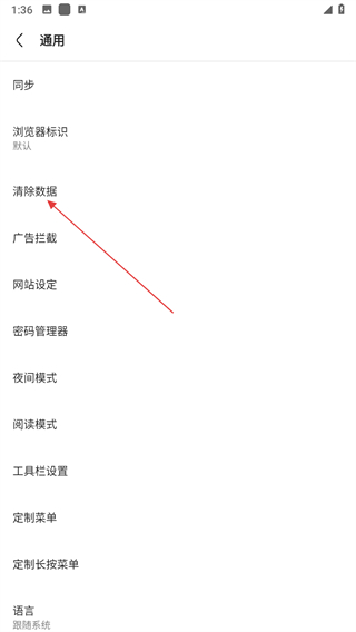 4、在通用頁面,點(diǎn)擊清除數(shù)據(jù)選項(xiàng)。