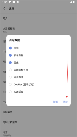 5、選擇緩存的數(shù)據(jù)項(xiàng),點(diǎn)擊確定按鈕。