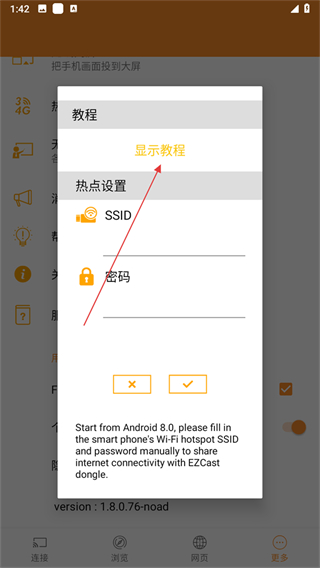 易連投屏app是用于連接您的MiraScreen裝置。透過(guò)EZMira Android應(yīng)用軟件您可以很輕易就將智能手機(jī)上的視頻內(nèi)容投射到大屏幕上。