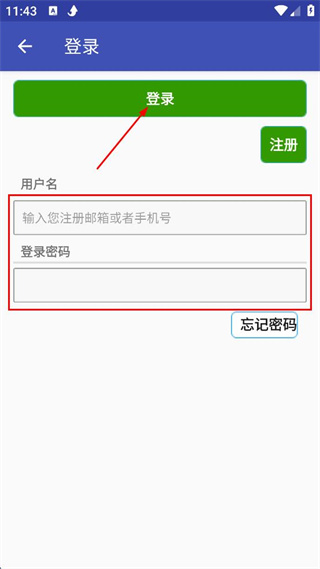 3、進入登錄頁面,輸入用戶名注冊郵箱或手機號和登錄密碼。
