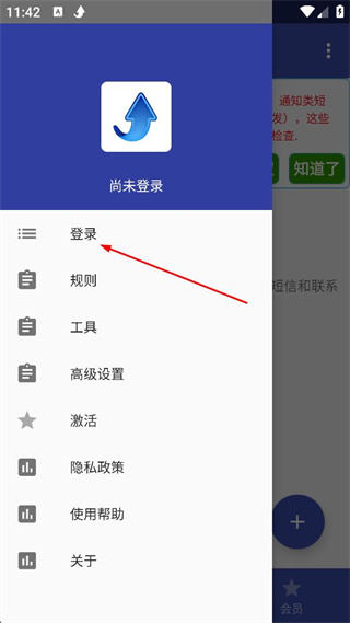 2、在主頁面點擊左上角三條橫線圖標,展開菜單,點擊登錄。