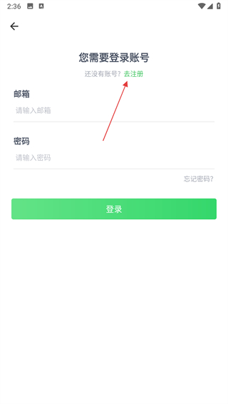 3、進入登錄頁面后,點擊去注冊選項,進入注冊詳情頁。