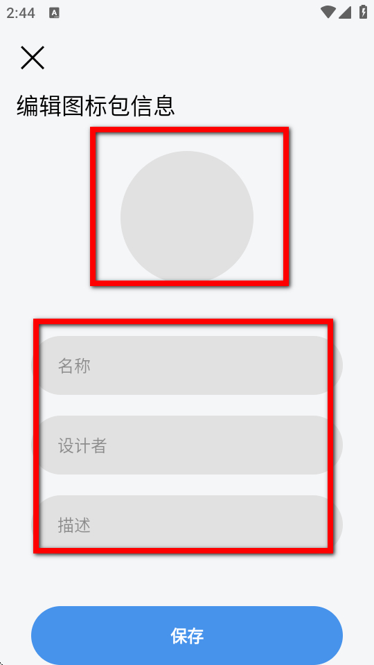 2、在編輯圖標(biāo)包信息界面,設(shè)置圖標(biāo)包的圖片、名稱、設(shè)計(jì)者和描述等信息。