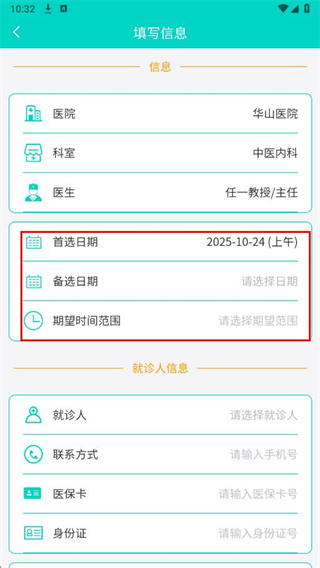 4、在填寫信息頁面,選擇首選日期、備選日期和期望時(shí)間范圍,