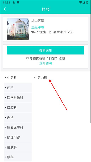 2、進(jìn)入掛號頁面后,選擇對應(yīng)的科室,例如中醫(yī)內(nèi)科。