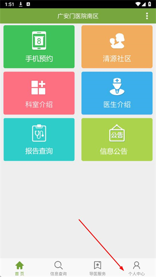 1、打開廣安門醫(yī)院南區(qū)APP,點擊個人中心選項。