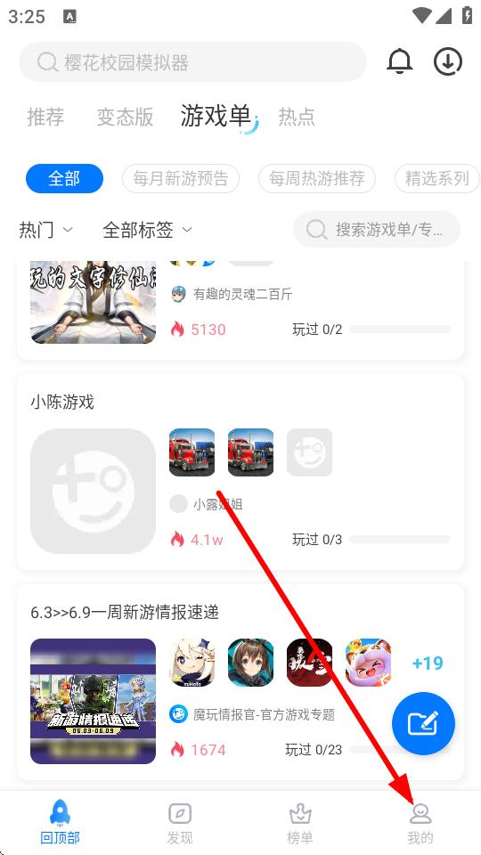 1、打開魔玩助手,點(diǎn)擊底部導(dǎo)航欄中的我的進(jìn)入個(gè)人頁面。