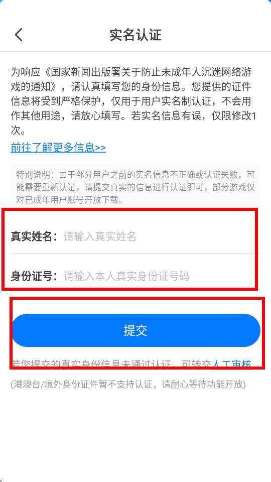 3、在實(shí)名認(rèn)證頁面,輸入真實(shí)姓名和身份證號(hào),確認(rèn)信息無誤后點(diǎn)擊提交。