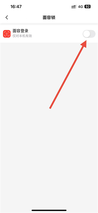 4、在面容鎖頁面中,開啟面容登錄的開關(guān),完成人臉識(shí)別,即可完成設(shè)置。
