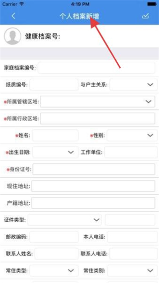 3、填寫健康檔案號等信息,完成信息提交即可。