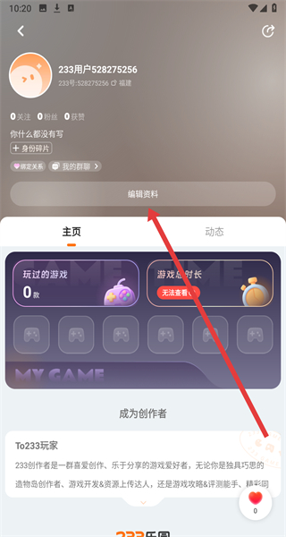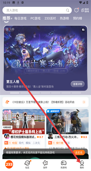 1、打開233樂園APP,點擊右下角“我的”,進入個人中心頁面。