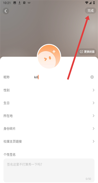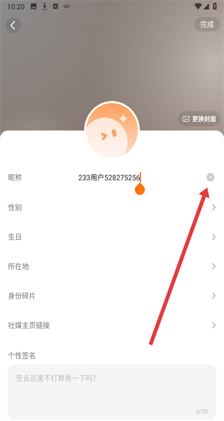 3、點擊昵稱右側的“×”,刪除原有昵稱后輸入新昵稱“kill”。