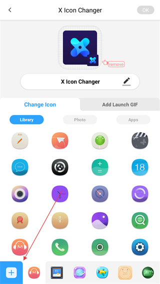 3、X Icon Changer的小部件將自動打開。之后,你可以更改應(yīng)用程序圖標而沒有任何標記。
