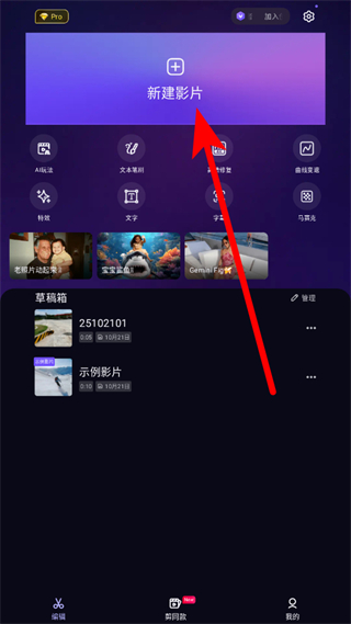 1、打開(kāi)VivaCut應(yīng)用,點(diǎn)擊新建影片,進(jìn)入素材選擇界面。