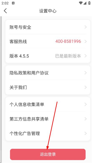 3、進入設(shè)置中心頁面后,點擊退出登錄即可退出登錄。