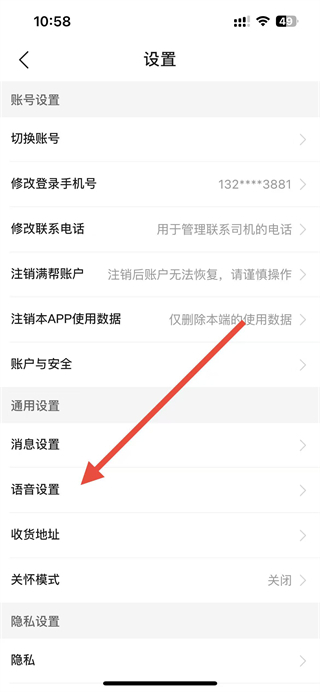 3、在設置頁面點擊語音設置選項,進入語音設置頁面。