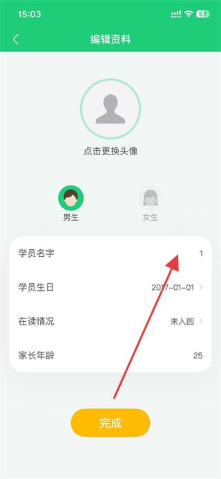3、找到并點擊上方學(xué)員名字選項,輸入新的昵稱。
