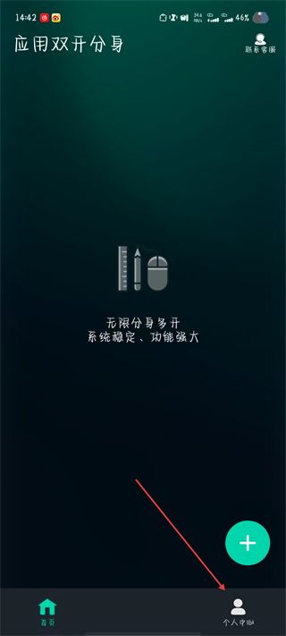1、打開應用雙開分身應用,點擊右下角個人中心選項,進入個人中心頁面。