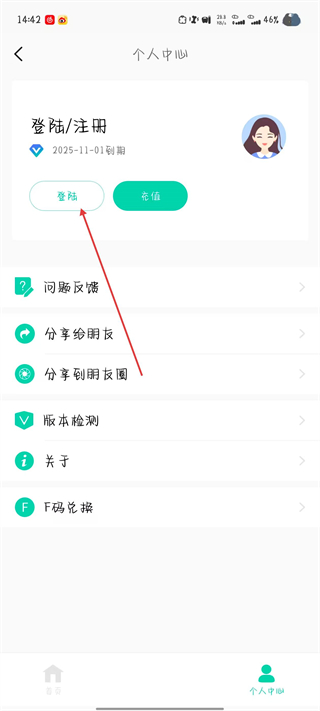 2、在個人中心頁面,點擊登陸/注冊區(qū)域的登陸選項,進入一鍵登錄頁面。