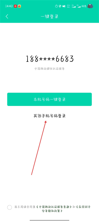 3、在一鍵登錄頁面,點擊其他手機號碼登錄選項,進入登錄注冊頁面。