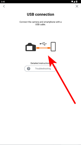 4、使用USB數(shù)據(jù)線將相機(jī)和智能手機(jī)連接起來,根據(jù)應(yīng)用內(nèi)的提示完成后續(xù)連接步驟即可完成連接。