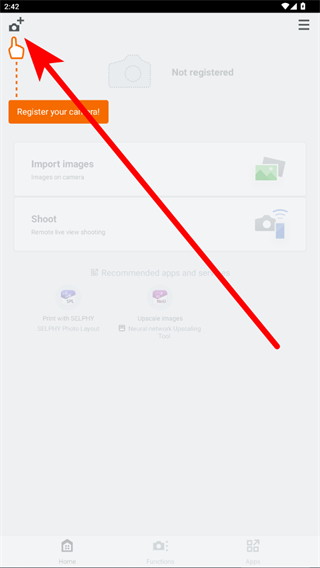 1、打開Camera Connect應(yīng)用,點(diǎn)擊左上角的添加相機(jī)圖標(biāo)。