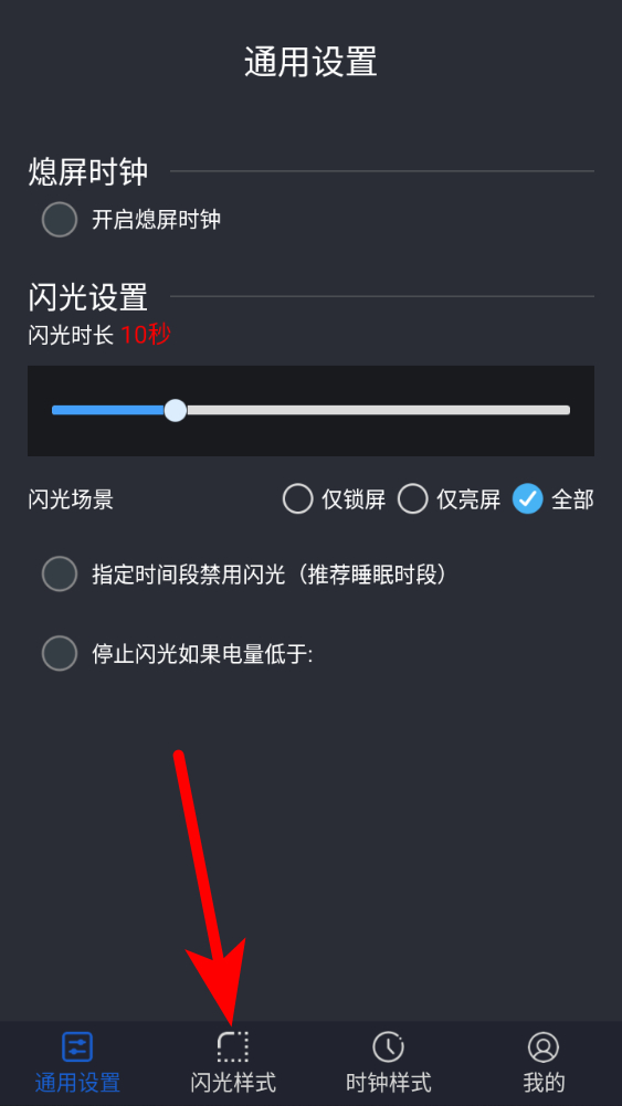 2、在通用設置頁面,點擊閃光樣式選項,進入通知閃光界面。