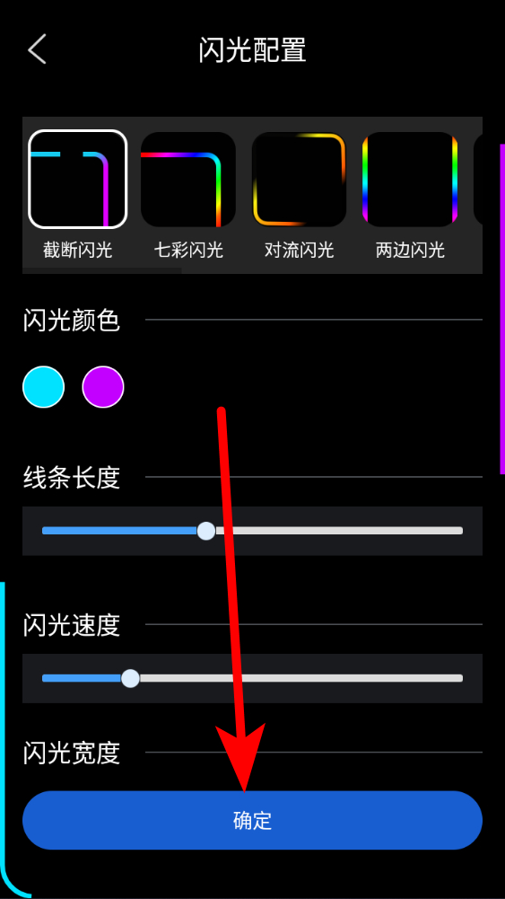 4、選擇喜歡的閃光樣式,并調整參數(shù)后,點擊確定按鈕,即可完成閃光樣式選擇操作。
