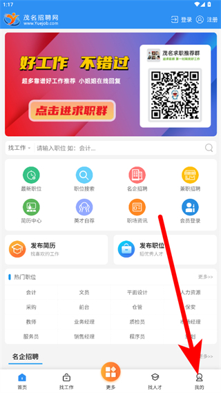 1、打開茂名招聘網(wǎng)APP,點擊右下角我的,進入登錄頁面。
