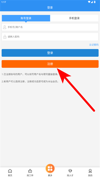 2、在登錄頁面,點擊注冊按鈕,進入注冊界面。