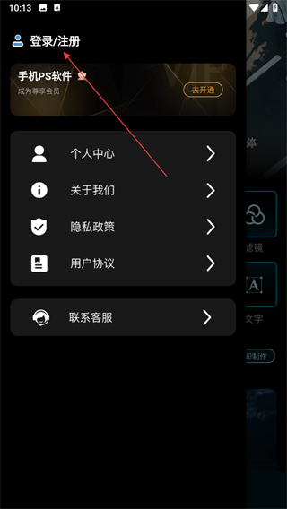 1、打開手機PS應用,點擊左上角的用戶圖標。