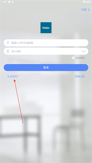 1、打開海爾攝像頭的應(yīng)用APP,進(jìn)入時(shí)點(diǎn)擊左側(cè)忘記密碼的按鈕。