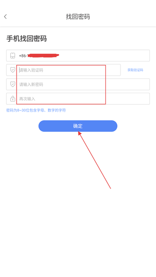 3、再輸入驗(yàn)證碼、新密碼后,點(diǎn)擊確定按鈕即可成功找回密碼。