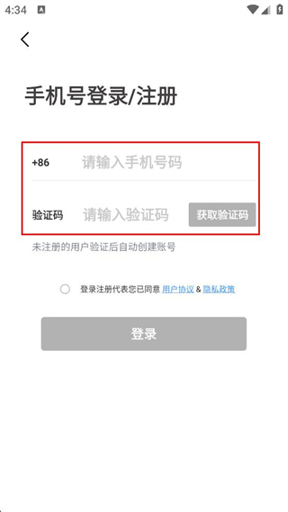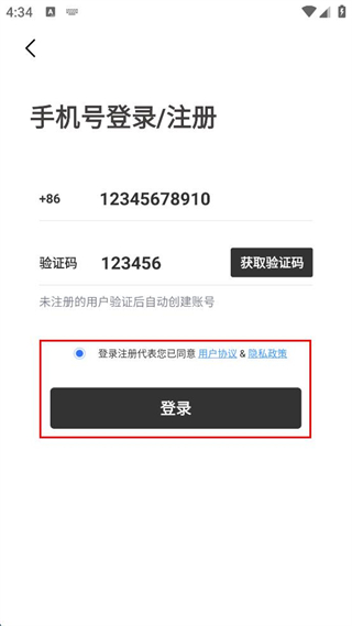 4、勾選登錄注冊(cè)代表已同意用戶協(xié)議&隱私政策,點(diǎn)擊登錄按鈕。