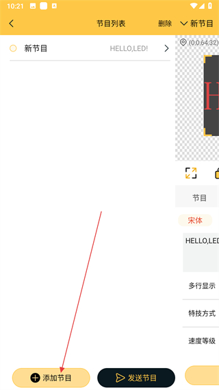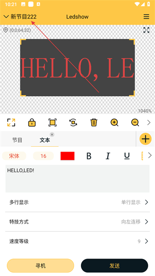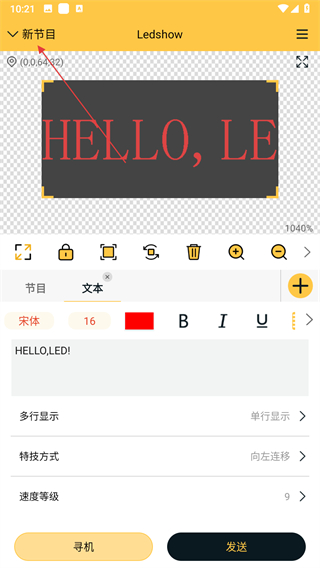 1、打開Ledshow應用,點擊左上角新節(jié)目下拉按鈕。
