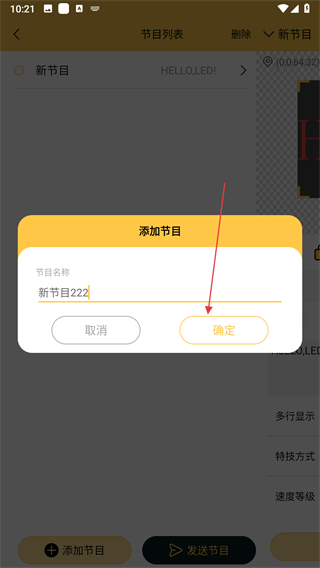3、在添加節(jié)目彈窗中,輸入節(jié)目名稱,點擊確定按鈕。