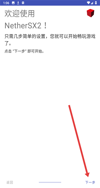 1、打開NetherSX2模擬器,點(diǎn)擊“下一步”,完成初始設(shè)置流程。