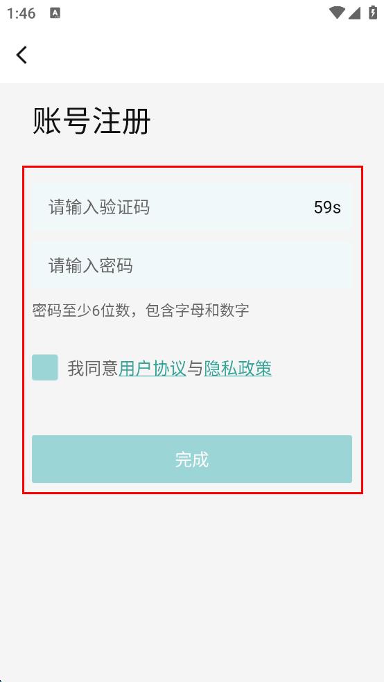 4、勾選同意用戶協(xié)議與隱私政策,點(diǎn)擊“完成”按鈕,即可完成手機(jī)號(hào)碼注冊(cè)。