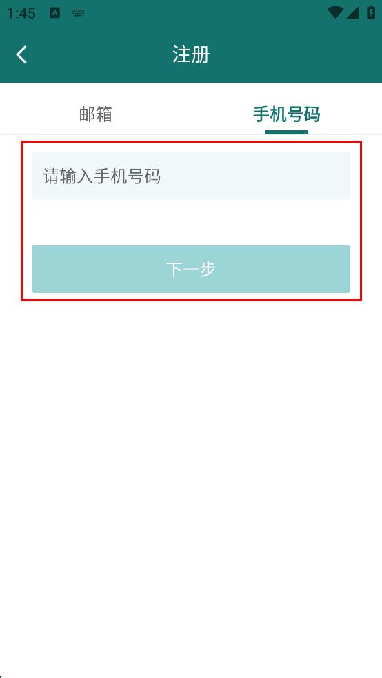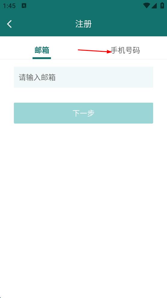 2、在注冊(cè)頁面,點(diǎn)擊“手機(jī)號(hào)碼”標(biāo)簽。