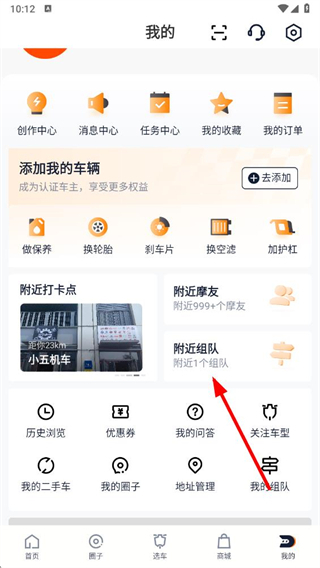 2、在個人頁面點擊附近組隊選項,進入組隊列表頁面。