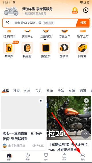 1、在機車圈app首頁點擊我的選項,進入個人頁面。