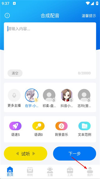 專業(yè)配音一鍵合成,快速將文本轉(zhuǎn)換為流暢自然清晰的語(yǔ)音,提供男女聲、特色主播,英文主播,方言主播等,支持調(diào)節(jié)音量,語(yǔ)速和背景音樂
