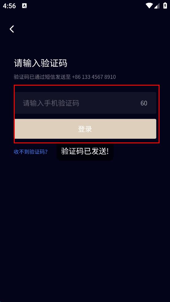 4、輸入收到的手機驗證碼,點擊登錄按鈕。