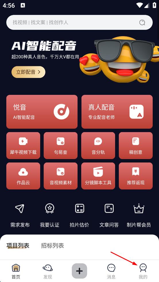 1、打開制片幫APP首頁,點擊右下角我的按鈕。