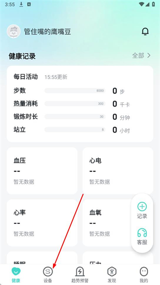 1、打開SKG健康APP,點擊設備選項。