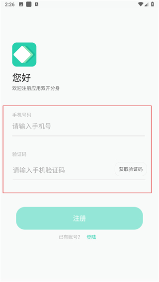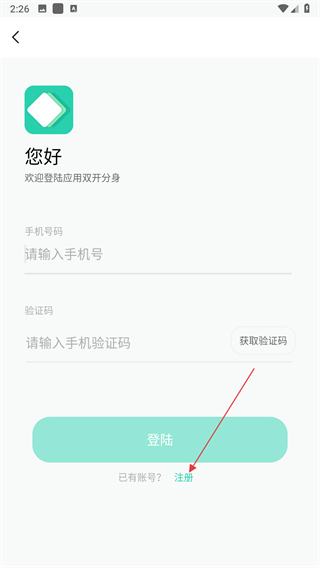 4、輸入手機號碼,輸入收到的驗證碼后點擊注冊按鈕。
