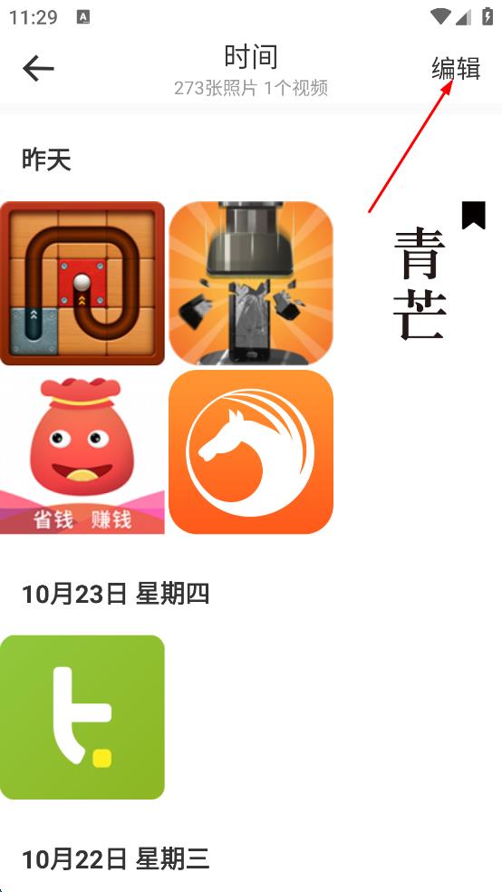 3、進(jìn)入時(shí)間相冊(cè)頁(yè)面,點(diǎn)擊右上角編輯。